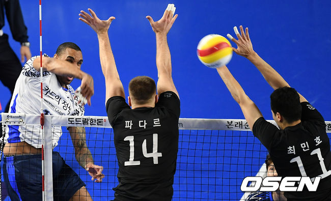 마지막 5세트도 일진일퇴 공방. 마지막까지 한 치 앞을 내다볼 수 없는 접전은 듀스까지 이어졌다. 뒷심에서 현대캐피탈이 웃었다. 14-14에서 파다르의 오픈 공격에 이어 신영석의 블로킹으로 짜릿한 풀세트 승리를 완성했다. 우리카드는 아가메즈가 5세트 4득점 포함 팀 내 최다 24득점으로 부상 투혼을 발휘했지만 마지막 고비를 못 넘었다. /waw@osen.co.kr