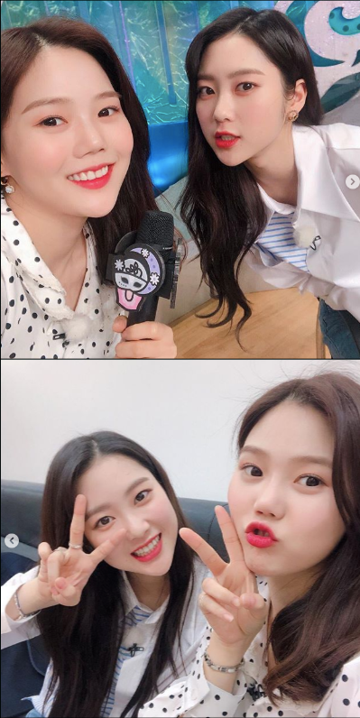 사진 속 효정과 지효는 대기실에서 다정한 포즈를 취했다. 두 사람 모두 흰색 의상으로 청순미를 더했다.