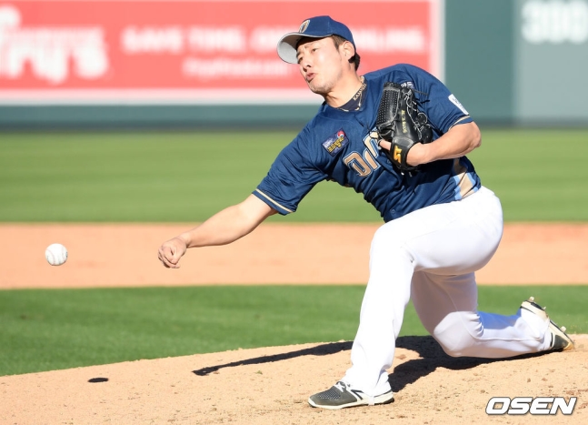 미국 애리조나 2차 캠프 MVP에 뽑힐 만큼 가능성을 인정받은 그는 14일 대구 삼성전서 시범경기 첫 등판에 나섰다. 선발 마운드에 오른 김영규는 최고 142km의 직구와 슬라이더, 체인지업을 주무기삼아 4.1이닝 1피안타(1피홈런) 4탈삼진 1실점 짠물 피칭을 뽐냈다.