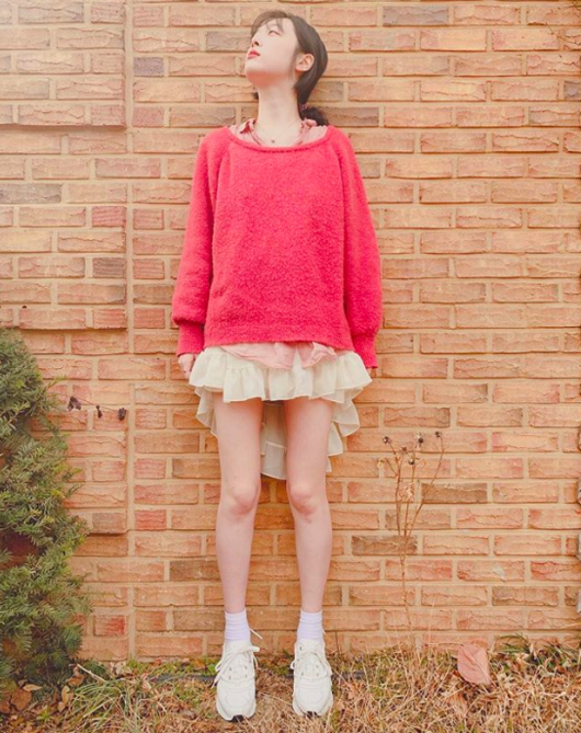 설리는 18일 자신의 인스타그램에 별다른 멘트 없이 한 장의 사진을 게재했다. 공개된 사진 속 설리는 레드 계열의 스웨터에 짧은 치마를 입고 하늘을 응시하고 있다.