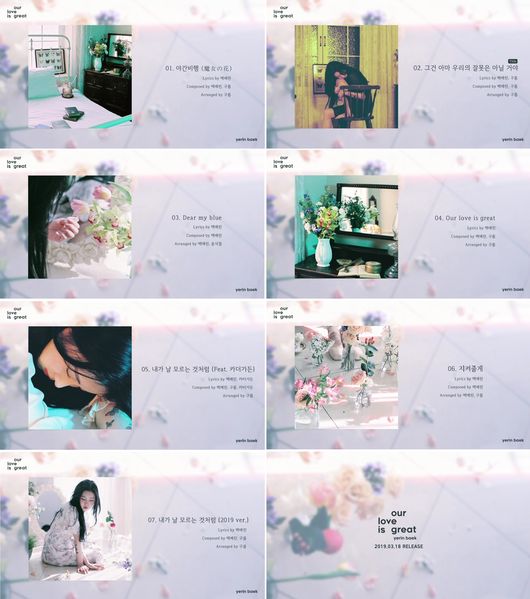 백예린은 지난 18일 타이틀곡 '그건 아마 우리의 잘못은 아닐 거야'를 비롯해 두 번째 솔로 미니앨범 '아워 러브 이즈 그레이트(Our love is great)'를 발표했다. 백예린이 신곡을 발표한 것은 지난 2016년 12월 크리스마스 시즌송 '러브 유 온 크리스마스(Love you on Christmas)' 이후 무려 2년 3개월만이다.