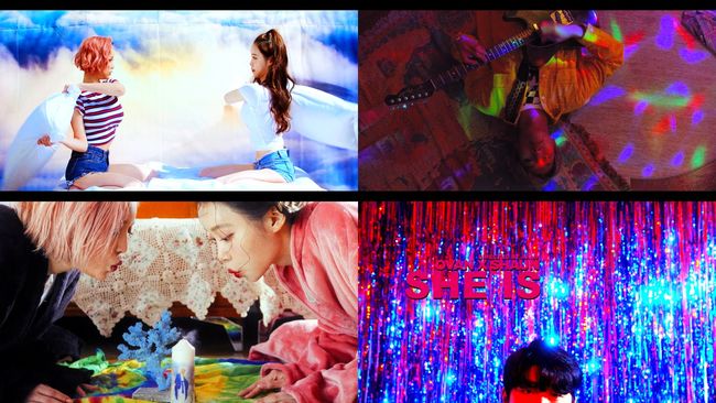두 명의 여자 주인공이 잠에서 깨 기지개를 켜는 장면으로 시작되는 이번 티저 영상 속에는 타이틀곡 ‘쉬 이즈(She is)’의 펑키한 레트로 사운드가 약 20초가량 공개되며 보는 이들의 귓가를 사로잡았다.