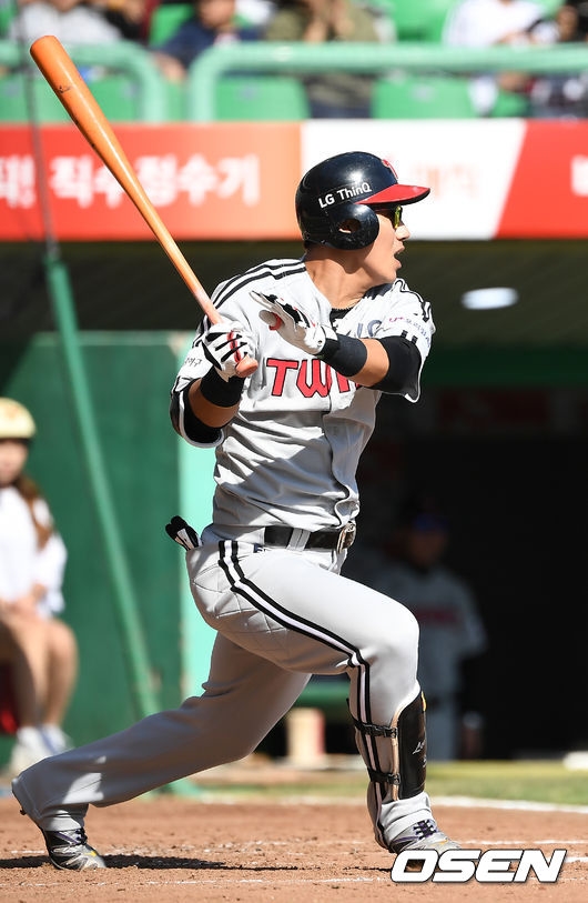 이천웅은 4-1로 앞선 5회 1사 2루 득점권 상황에서 박용택 대신 타석에 들어섰다. KT 두 번째 투수 김재윤의 4구째를 그대로 걷어 오른쪽 외야 스탠드에 꽂았다.