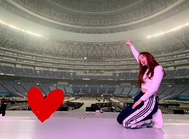 공개된 사진 속에는 트레이닝 복을 입은 나연이 이날 공연을 펼칠 일본 오사카 교세라 돔에서 포즈를 취하고 있는 모습 등이 담겨 있다.