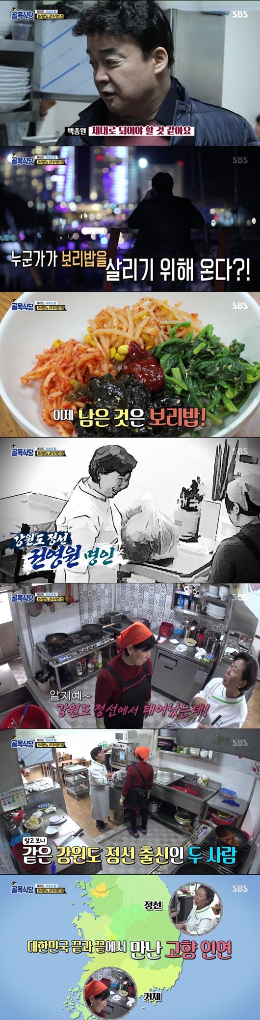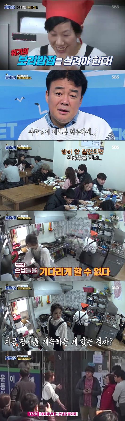 이날 백종원은 보리밥, 코다리찜집을 찾아갔다. 백종원은 보리밥을 포기하지 않는다는 사장에게 "보리밥이 어설퍼선 안 된다, 제대로 해야한다"면서 "일이 커져야할 것"이라고 했고, 사장은 "각오하고 있다"고 말했다. 백종원은 "보리밥을 살리기위해 누군가 온다, 웬만해선 SOS하지 않는데 도움을 청했다"며 귀인이 온다고 했다.