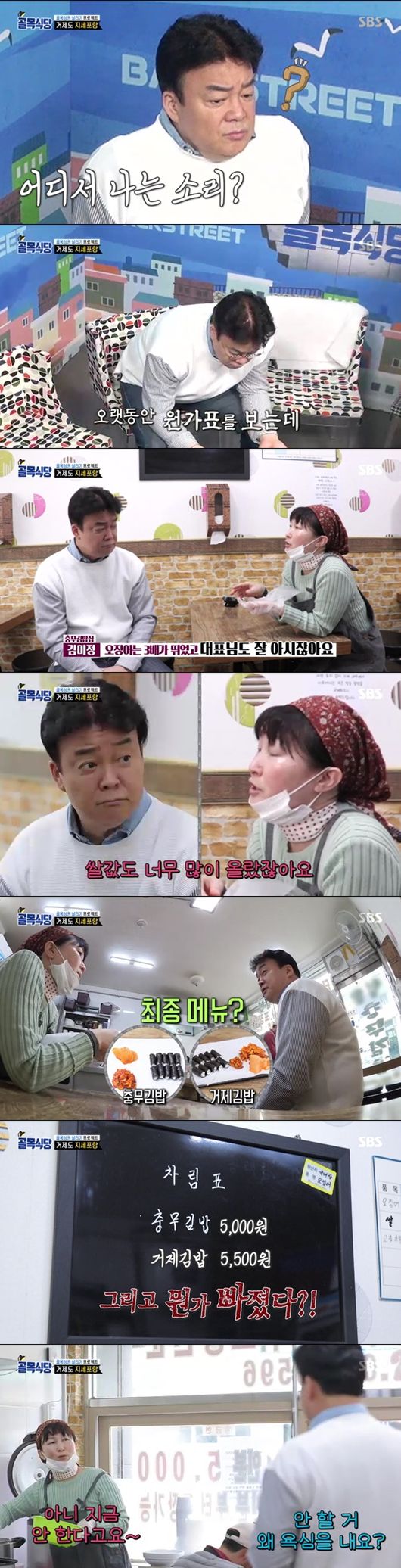 오픈 전, 충무김밥집 가족들의 대화를 백종원이 듣게 됐다. 가격을 내리기엔 물가가 올라 확정할 수 없다고 했다. 백종원도 원가표를 건네받으며 고민에 빠졌다. 지금 바로 가격을 결정해야하기에 사장과 얘기를 나눠보기 위해 이동했다. 그리곤 원가표 가격에 대해 계산을 잘못한 것 같다고 했다. 사장은 "가격이 다 올랐다"고 하자, 백종원은 "음식값 내리는 사람들을 바보냐"면서 "그건 소비자가 판단할 문제"라고 했다.