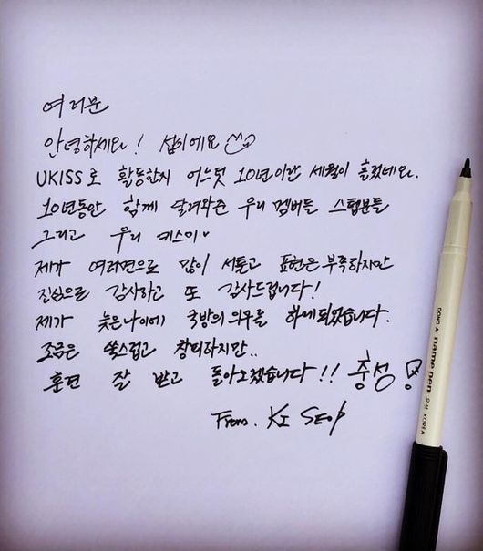 앞서 기존 앓고 있던 허리디스크 증상악화로 사회복무 요원 판정을 받은 기섭은 논산 육군훈련소에 오늘 입소해 기초 군사훈련을 받은 뒤 사회복무요원으로 대체 복무할 예정이다. 기섭은 같은 유키스 멤버 수현, 훈에 이어 세 번째로 군에 입대하며 남은 멤버 일라이, 준은 개별활동을 통해 활동을 이어갈 예정이다.