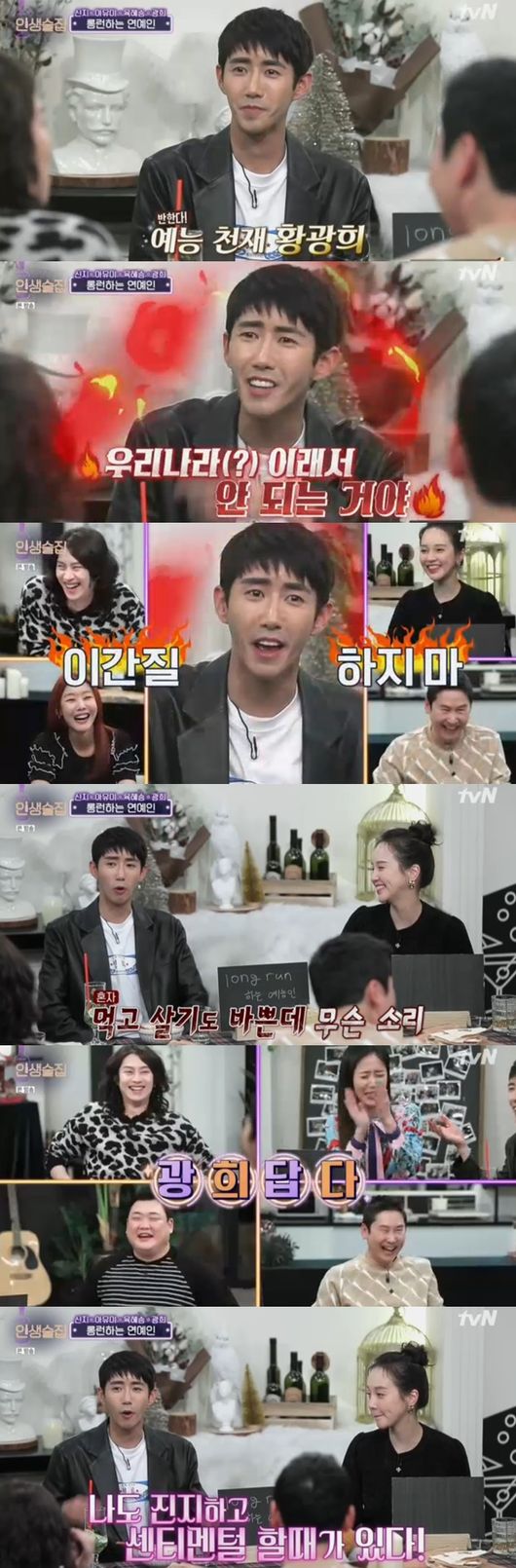 하고싶은 예능프로그램에 대해 '관찰예능'을 꼽았다. 대중인들이 연예인 황광희에 대해 궁금해하지 않는다고. 광희는 "사생활도 예능일 거란 편견, 나름 진지하고 센티멘털해질 때 있다"며 예능인 뒤로 반전 생활을 보여주고 싶다고 말했다. 이어 광희가 반전 일상 모습을 보였다. 슈트를 즐겨입는 광희였다. 하지만 모두 '허세샷'이라고 댓글이 달리자 광희는 "배우들이 입으면 멋있다고 하는데, 저런 댓글 하나로 웃음이 도배된다"며 고충을 토로했다.