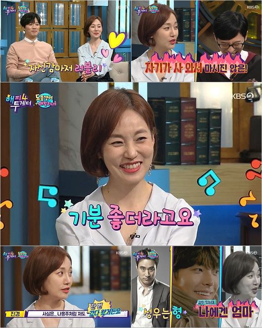 진경이 당당한 매력으로 '해피투게더4'를 뒤흔들었다. 다채로운 매력을 과시한 것은 물론 이혼한 경험을 솔직하게 털어놓은 것.