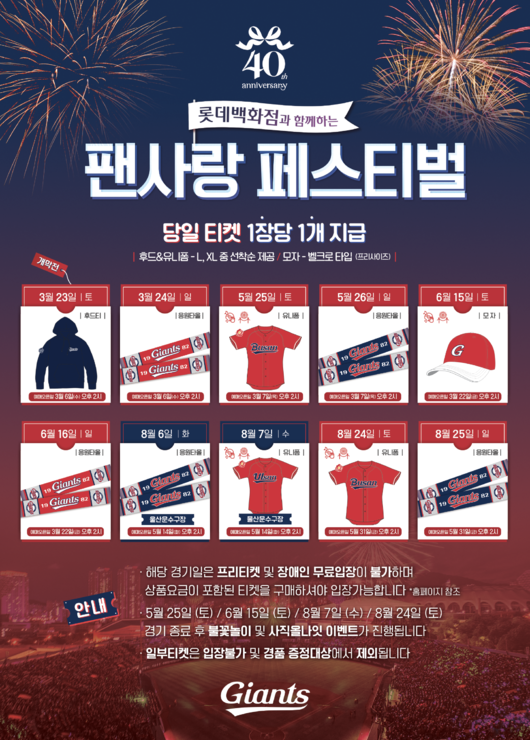 롯데 자이언츠는 22일 오후 2시부터 2019시즌 세 번째 ‘롯데백화점과 함께하는 팬사랑페스티벌'(6월15~16일) 티켓 예매를 시작한다.