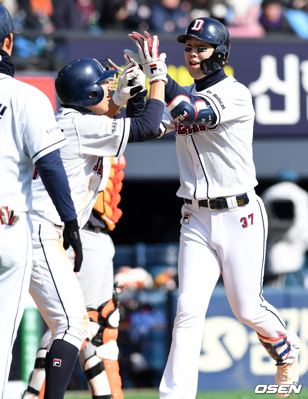 두산 베어스의 박건우가 시즌 1호 홈런을 쏘아 올렸다.