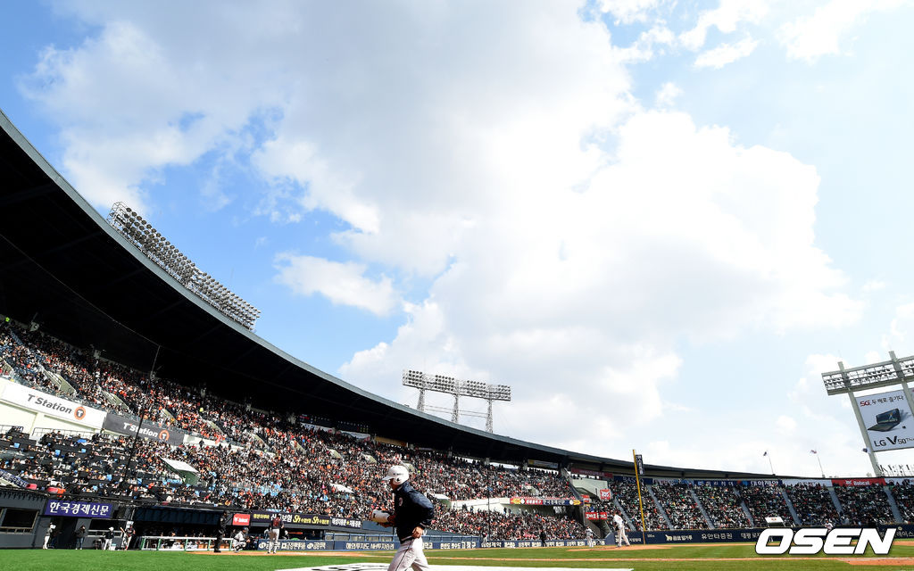 비록 날씨가 좋지 않았지만, 이날 야구장에는 구름 관중이 몰렸고, 오후 3시 18분 2만 5000석 전석 매진이 됐다. 올 시즌 두산의 시즌 1호 매진이다./ bellstop@osen.co.kr