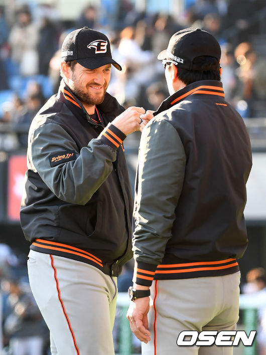채드벨의 호투가 빛났다. 채드벨은 1회말 선두타자 허경민에게 안타를 맞은 뒤 7회까지 단 한 타자도 1루를 밟게 하지 않았다. 21타자 연속 범타 행진. 여기에 8회말 선두타자 오재일에게 볼넷을 내줬지만, 곧바로 병살타를 이끌어 냈고, 8이닝을 공 95개로 1피안타 1볼넷 무실점으로 막았다.