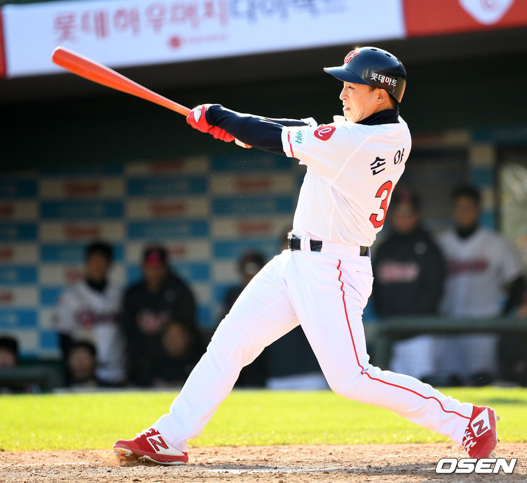 롯데 자이언츠 ‘캡틴’ 손아섭은 정규시즌이 임박한 시범경기부터 페이스가 좋지 않았다. 시범경기 6경기 타율 9푼5리(21타수 2안타)에 머물렀다. 시범경기 성적으로는 지난 2017년 7푼1리(14타수 1안타) 이후 가장 좋지 않았다.
