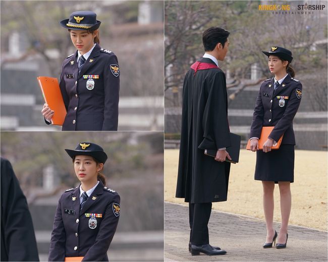 공개된 사진 속 김다솜은 제복을 갖춰 입은 채 풀 죽은 표정을 짓고 있다. 그는 상대 배우인 김권(강성모 역)의 뒷모습을 아련하게 쳐다보며 금방이라도 눈물을 떨어트릴 것 같은 분위기로 보는 이들의 궁금증을 자아낸다.
