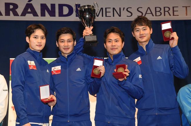 구본길(국민체육진흥공단), 오상욱(성남시청), 김준호(화성시 청), 김계환(서울교통공사)으로 구성된 한국 사브르 대표팀은 22일부터 24일까지 헝가리 부다페스트에서 열린 대회 남자 사브르 단체전에서 홈팀 헝가리를 45-41로 제압, 우승을 차지했다.