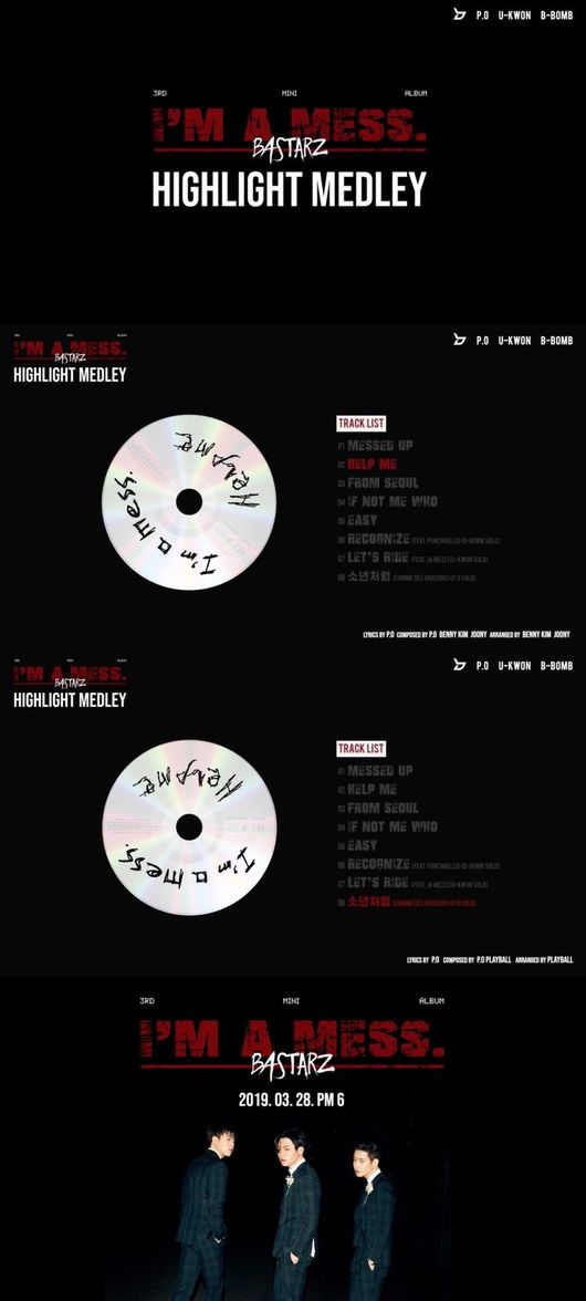 블락비 바스타즈는 지난 24일 공식 SNS 채널을 통해 세 번째 미니앨범 ‘I’m a mess.’(아임 어 메스)의 단체 티저 이미지와 하이라이트 메들리 영상을 공개했다.