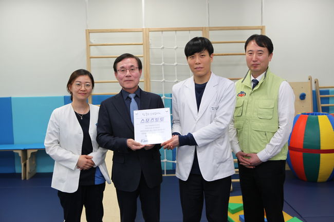 체육진흥투표권 스포츠토토의 수탁사업자인 '케이토토'가 푸르메재단 '넥슨어린이재활병원'에 전달한 후원금으로 조성한 아동운동발달치료실의 현판식을 진행했다.