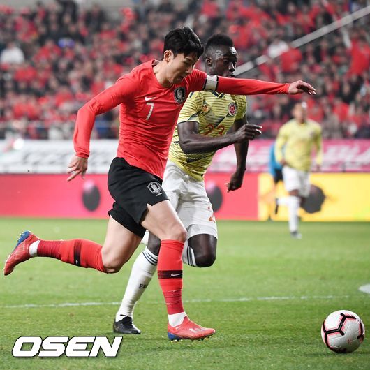 손흥민은 26일 오후 8시 서울월드컵경기장에서 열린 콜롬비아 축구대표팀과 A매치 평가전에서 선발출전해 전반 15분 팀에 리드를 안기는 선제골을 터뜨렸다.
