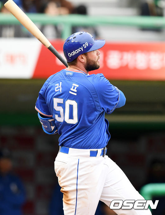 러프가 네 번째 타석에 들어섰다. 2회 삼진, 4회 좌중간 2루타, 6회 삼진을 기록한 러프는 오현택의 3구째 직구(141km)를 밀어쳐 오른쪽 외야 스탠드에 꽂았다. 비거리는 110m. 러프의 홈런이 터지자 덕아웃 분위기가 되살아나는 모습이었다. 김동엽이 포수 스트라이크 낫 아웃, 김성훈이 좌익수 플라이로 물러나면서 극적인 상황은 연출되지 않았다.