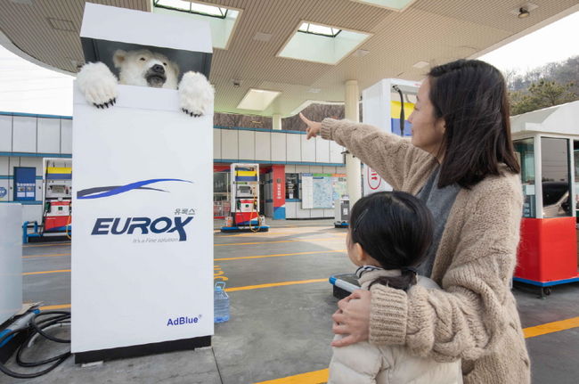 화성휴게소(서울 방향)에선 실물 크기의 북극곰 모형이 요소수 주입기 위로 얼굴을 빼꼼히 내밀고 있다. 요소수가 미세먼지의 주범 중 하나로 손꼽히는 질소산화물(NOx)을 질소와 깨끗한 물로 환원해 환경에 도움을 주기 때문이다. 이 북극곰 모형은 주유소에서 환경에 대한 경각심을 일깨워주는 한편, 삭막한 분위기의 주유소에서 동심을 불러일으키고 있다.