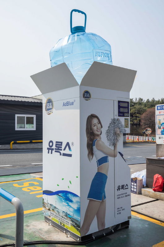 안성휴게소(서울 방향) 주유소에는 유록스 대형 페트병 모형이 제품 상자를 형상화한 주입기 위를 뚫고 나와 마치 거인 나라에서 사용하는 유록스 페트병 제품을 떠올리게 한다. 이 설치물은 요소수의 존재와 필요성을 대중에게 알림과 동시에 시중에 페트병으로 판매되는 정품 유록스와 주유소 내 주입기에 담긴 유록스가 동일한 제품이란 걸 강조하고 있다.