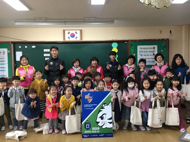 울산현대가 27일 '반갑다 축구야' 캠페인의 일환으로 오전 울산 동구 소재 초등학교들을 방문해 시즌권과 학용품을 전달했다.