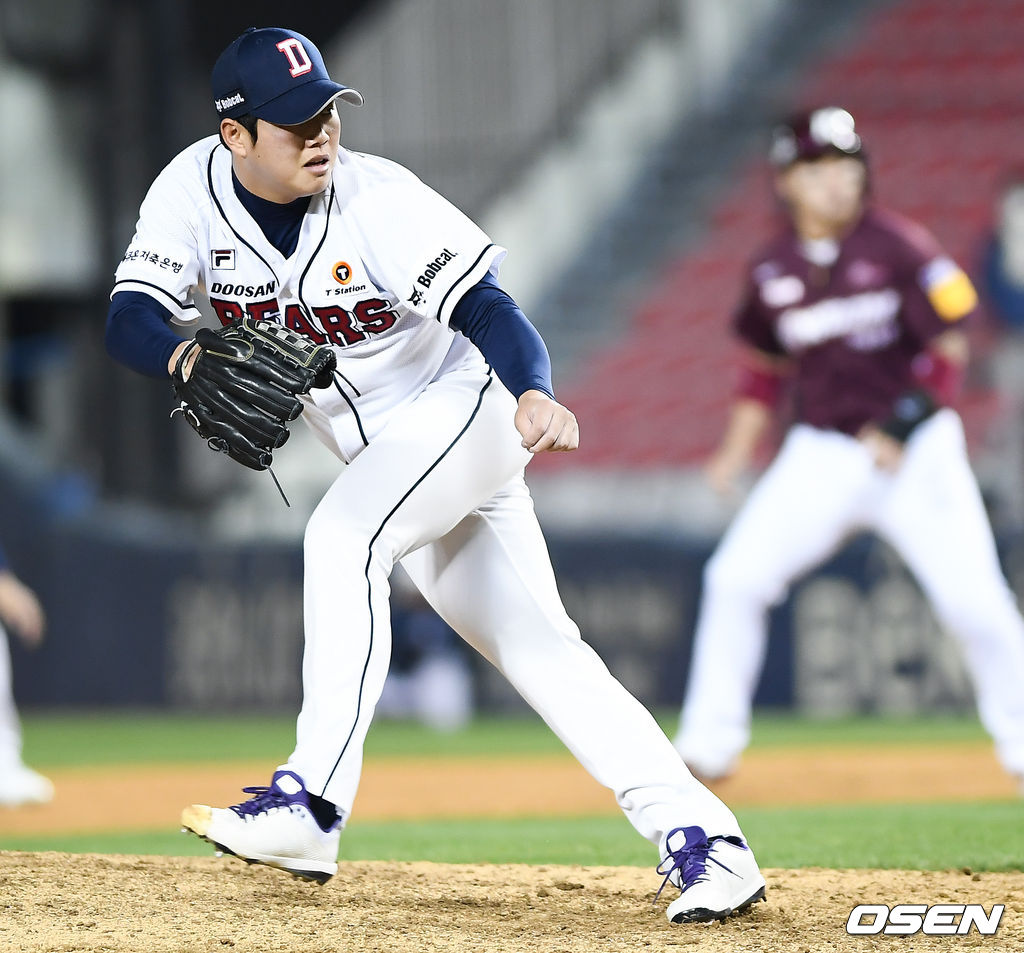 함덕주는 28일 서울 잠실구장에서 ‘2019 신한은행 MY CAR KBO리그’ 키움 히어로즈와의 팀 간 3차전에 9회 마운드에 올랐다.