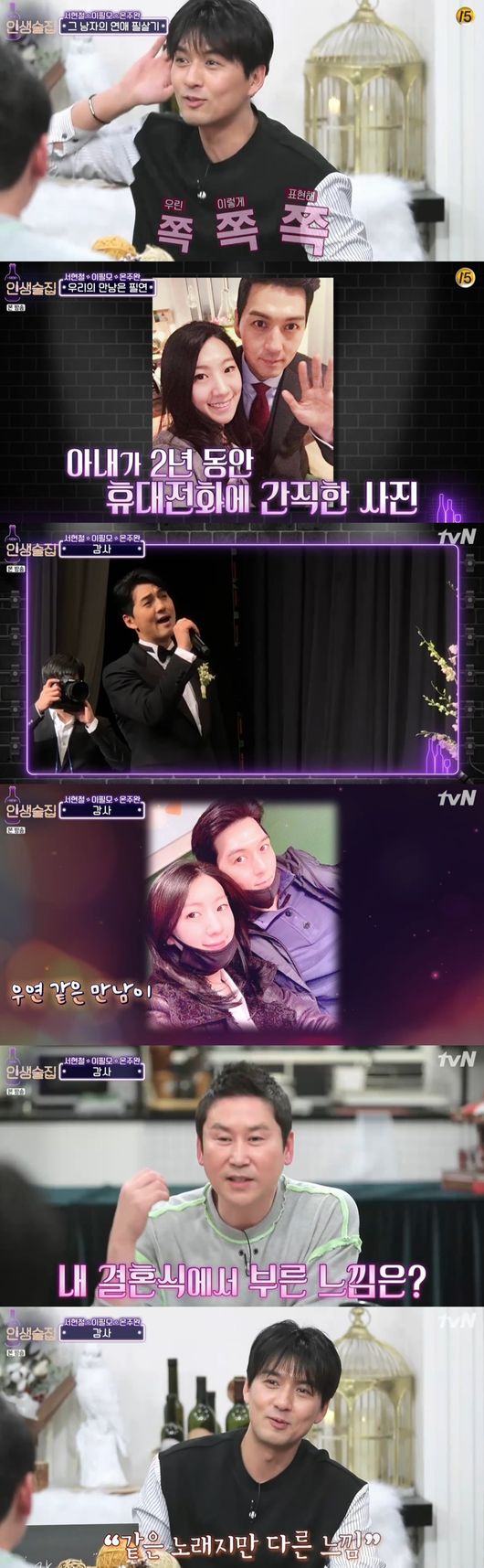 결혼한지 녹화일 기준으로 한달 반 정도 됐다는 이필모. MC들은 서현철에게 '이필모가 결혼한 후 바뀐 것이 있는지' 물었다. 서현철은 "크게 느껴지진 않는다. 그런데 대화 중 문득문득 아내를 향한 애정이 느껴진다"고 답했다.