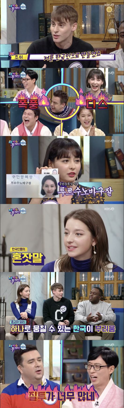 28일 오후 방송된 KBS2 '해피투게더4'에는 ‘나 한국 산다’ 특집으로 꾸며져 로버트 할리, 샘 해밍턴, 구잘 투르수노바, 조쉬 캐럿, 안젤리나 다닐로바, 조나단 토나가 출연했다.