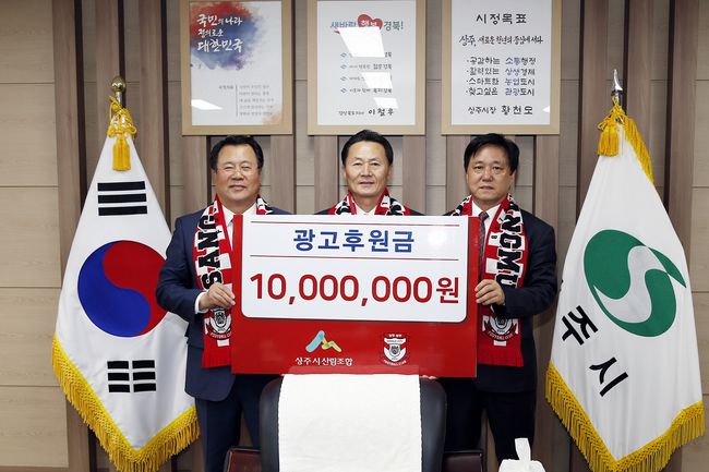 이번 후원금 전달식에는 황천모 상주시장, 송재엽 상주시산림조합장, 신봉철 상주상무프로축구단 대표이사 그리고 양사 관계자가 참석했다.