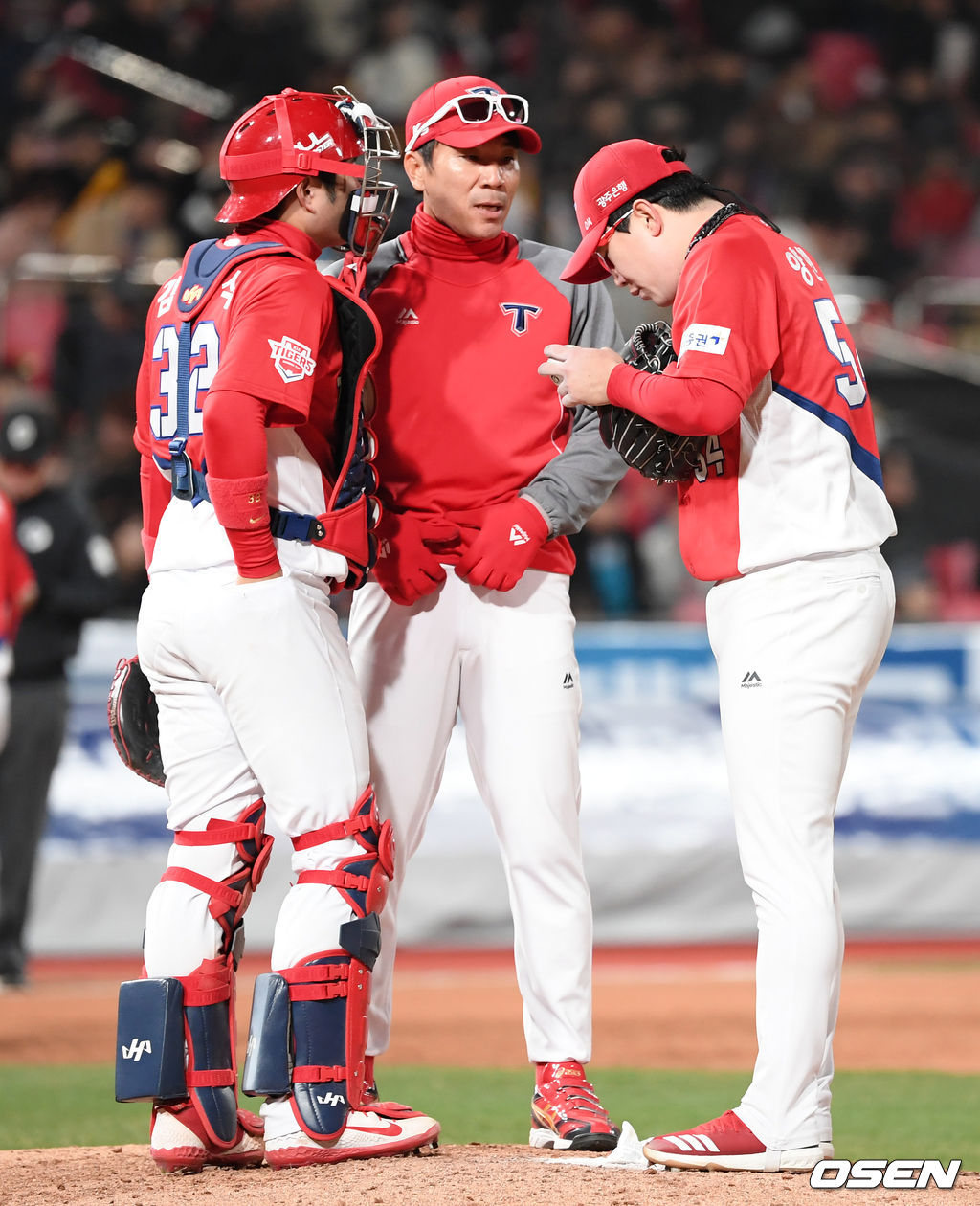 1회말 박경수-유한준-강백호를 범타로 처리하면서 출발은 좋았다. 그러나 2회말 선두타자 로하스에게 2루타를 맞은 뒤 윤석민과 황재균을 범타로 막았지만, 장성우의 적시타로 첫 실점을 했다. 이어 오태곤의 안타로 1,3루가 됐지만, 심우준을 땅볼 처리하면서 이닝을 끝냈다.