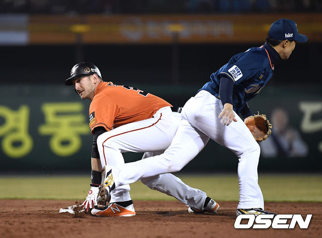 여기서 호잉의 판단이 빛났다. 호잉은 NC의 중계플레이가 전개되는 과정을 틈타 빠르게 판단해 2루까지 향했다. 공이 3루를 갔다가 다시 2루로 왔지만 호잉의 발이 빨랐다. 공격적인 주루플레이로 다시 한 번 무사 2,3루 기회를 잡은 한화였다.
