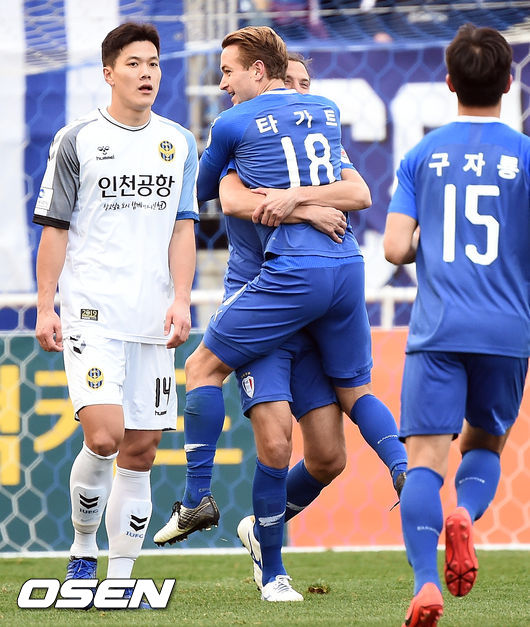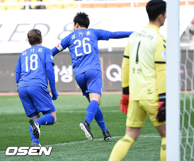 타가트가 다시 한 번 아쉬운 모습을 보였다. 전반 45분 한의권이 오른쪽 측면에서 상대 수비수를 제치고 정확한 크로스를 전했다. 타가트가 타이밍에 맞춰 오른발 논스톱 슈팅을 시도했지만 골대를 강타하며 기회를 놓쳤다. 결국 전반은 1-1로 마무리됐다.