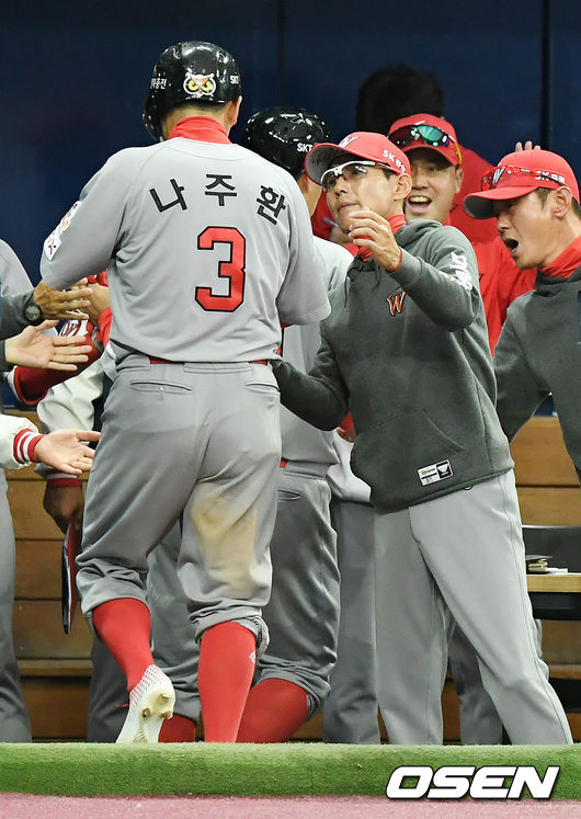 SK는 5회초 최정의 솔로포가 터지며 반격에 나섰다. 그리고 대망의 7회초, 최정과 허도환의 볼넷, 대타 정의윤의 안타로 만들어진 1사 만루에서 노수광의 우전 적시타로 2-2 균형을 맞췄다. 이후 한동민이 1루수 땅볼로 2사 만루가 만들어졌지만 김강민의 싹쓸이 3타점 3루타로 5-2 역전에 성공했다. 이후 이재원과 최항의 적시타를 묶어 7회에만 7점을 수확, 8-2로 달아났다.