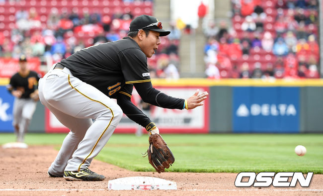 강정호는 1일(이하 한국시간) 미국 오하이오주 신시내티 그레이트아메리칸볼파크에서 열린 2019 메이저리그 피츠버그 파이어리츠와 원정경기에 6번타자 3루수로 선발출장, 시즌 첫 2루타 포함 4타수 1안타 1볼넷으로 활약했다.