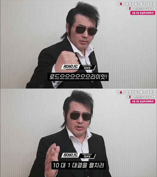 시합을 5일 앞둔 김보성은 직접 찍은 영상을 통해 “4월 6일 잠실학생체육관에서 열리는 세계종합격투기 대축제에 저 김보성이 10대 1 대결을 펼치러 갑니다!”라며 “모든 참가 선수들이 아무 부상 없이 즐겁게 경기를 펼치길 바라겠습니다. 로드의리!”라고 각오를 다졌다.