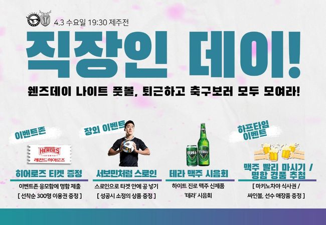 성남FC가 3일 저녁 7시 30분 성남종합운동장서 열리는 ‘하나원큐 K리그1 2019 5라운드’ 제주와 홈경기에 직장인들을 대상으로 하는 이벤트를 연다.
