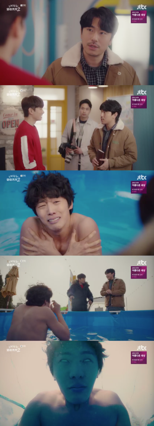 1일 오후 방송된 종합편성채널 JTBC 월화드라마 ‘으라차차 와이키키2’(극본 김기호 송지은, 연출 이창민) 3회에서는 ‘세상에 이런 일들이’ PD(이시언 분)가 국기봉(신현수 분), 이준기(이이경 분)의 게스트하우스를 찾았다.
