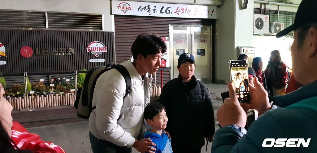 20여명의 팬들이 정우영 옆에서 차례차례 셀카를 찍고 사인을 받고 있었다. 정우영은 미소를 지으며 팬들의 사진, 사인 요구에 일일이 응했다. 한 남성 팬은 “지난 번에 던지는 것을 보고 내 여자친구도 팬이 됐다”며 이날도 함께 응원 온 여자친구와 정우영의 사진을 부탁해 찍어주기도 했다. 가족팬은 자녀들과 정우영의 사진을 찍어줬다. 모여든 팬들의 사인, 사진에 모두 응해준 정우영은 뚜벅뚜벅 걸어서 버스정류장 쪽으로 사라졌다.