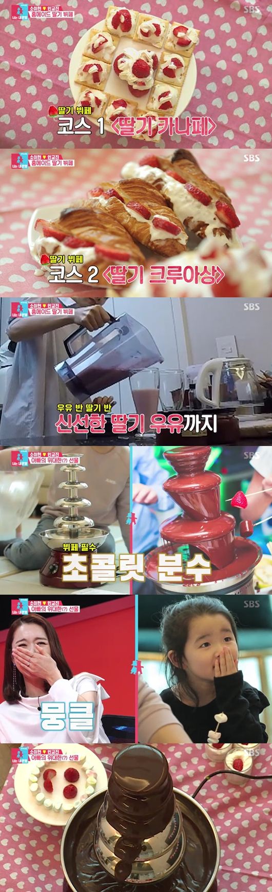 하지만 모양을 더한 홈메이드 뷔페가 더욱 먹기좋은 그림이 됐다. 딸 하은이 초콜릿 분수에 황홀한 표정을 짓자, 두 사람이 뿌듯하게 바라봤다. 이어 푸짐한 홈메이드 딸기뷔페를 만끽하며 행복한 시간을 즐겼다.