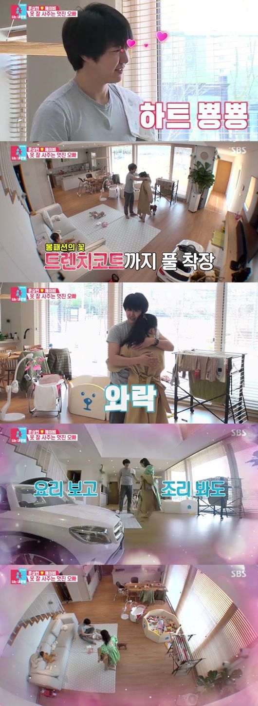 이어 아내의 힘듦을 알기에 직접 아내 옷을 사다줬다고 했다. 그러면서 임신과 육아에 밀려난 '여자'의 평범한 행복인 쇼핑을 언급하며 윤상현은 "옷이 날개라고 한 번 입고 나와봐라"며 서프라이즈 선물을 준비했다고 했다. 윤상현은 옷 방에 선물을 넣어놨고, 봄 트렌드에 맞춰서 사준 옷 선물을 보며 메이비는 감동했다.