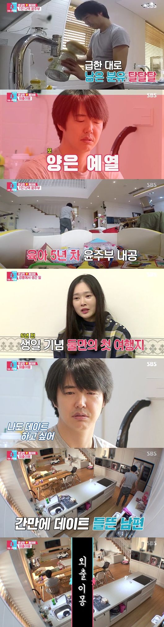윤상현은 잠시 메이비가 잠시를 비운사이, 5년차 윤주부 내공으로 육아를 도맡아했다. 밥 먹이랴 놀아주랴 정신이 없었다. 한시름 놓을 새도 없이 다둥이 아빠의 극한직업을 쉴 새 없이 이어갔다.