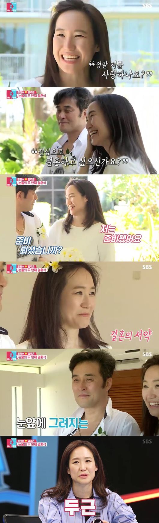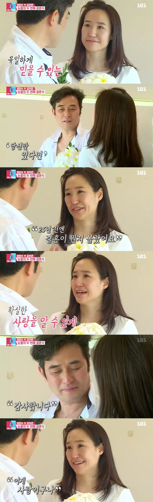두번째 결혼식에서 눈물로 전한 사랑의 맹세, 최민수는 "또 다른 민수로 살 수있게 해줘서 고맙다"면서 "앞으로도 같이 손을 잡고 따라갈 것, 유일하게 믿을 수 있는 사람, 당신만 있다면 항상 감사하다고 진심을 전했다.