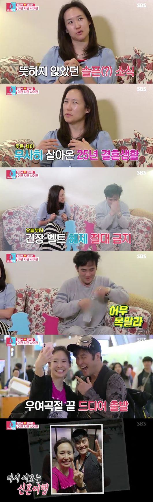 사이판에 도착하자마자 두 사람은 눈앞에 펼쳐진 환상적인 뷰에 흠뻑 젖었다. 그러면서 25년 전 추억들을 함께 꺼냈다. 최민수는 "신혼 여행이 무서운 것"이라 하자, 강주은은 "이제야 철이 들었다"면서 역시 강펀지를 날려 웃음을 안겼다.