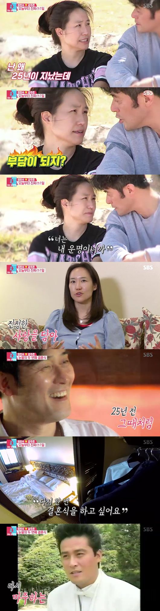 다시 함께 갈어갈미래를 약속하며 강주은은 최민수를 향해 "너무 확실하게 이 사람이다 느꼈다"면서 "이 남자를 결혼하고 싶은 정도가 아니라 ,이 남자랑만 결혼할 수 있는 사람"이라며 사랑의 확신을 전했고, 최민수 역시 "25년 전 결혼식은 리허설이었다"며 영원히 꽃길만 걸을 사랑의 확신을 전했다.