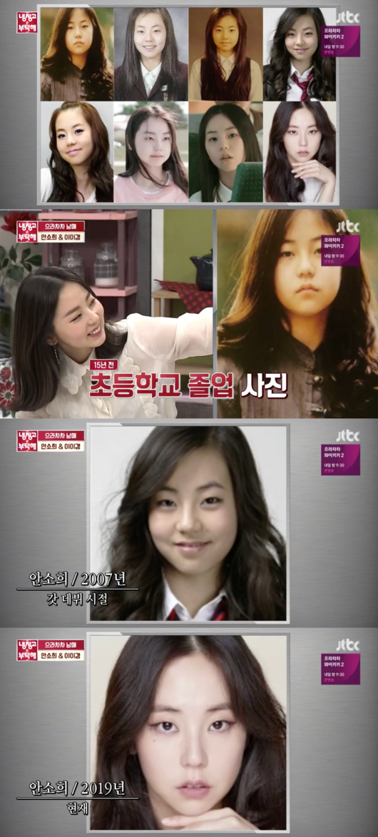 더욱 놀라운 점은 15년 전 초등학교 졸업사진부터 최근 사진까지 안소희의 사진이 공개됐을 때였다. 초등학교 졸업사진은 물론, 가수 데뷔 후 현재까지 13년째 한결 같은 모습이었던 것. 이에 김성주는 "우리가 알고 봐서 그렇지 사진을 섞어 놓고 순서대로 배열하라고 하면 모르겠다"며 그녀의 변함없는 동안 미모에 감탄했다.