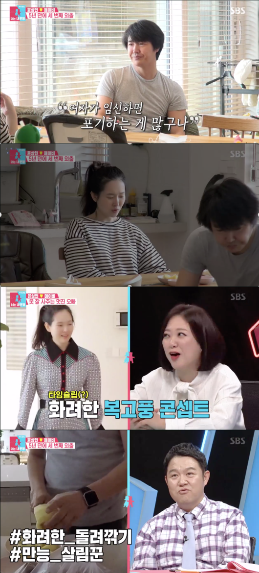 윤상현은 특히나 임신으로 인해서 고생하는 메이비에 대해서 잘 알고 있었다. 윤상현은 “여자는 임신하면 포기하는게 너무 많다”고 메이비를 위로하면서 메이비를 위한 옷을 선물했다.