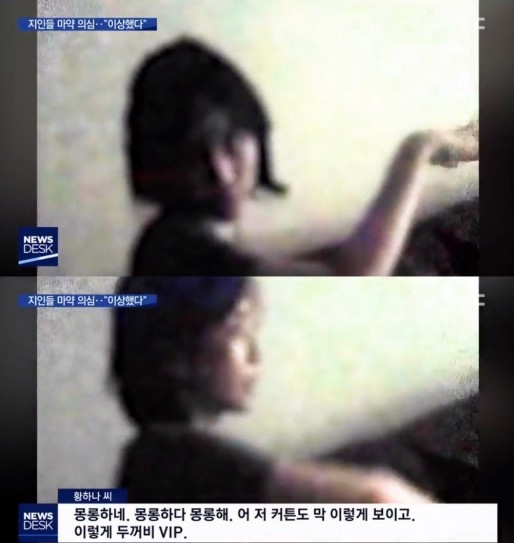 또한 황하나의 영상도 공개됐다. 영상 속 황하나는 소파에 앉아 팔을 흐느적거리며 횡설수설한다.