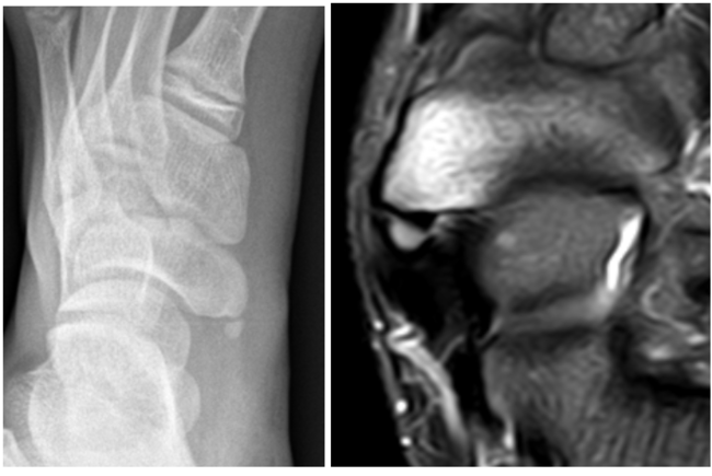 [사진] 부주상골 증후군이 발발한 부위. 아래는 X-레이와 MRI 사진.